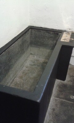 This is the room where the prisoners were bathed when they came into the jail – the bath is fed from a burner in the corner.