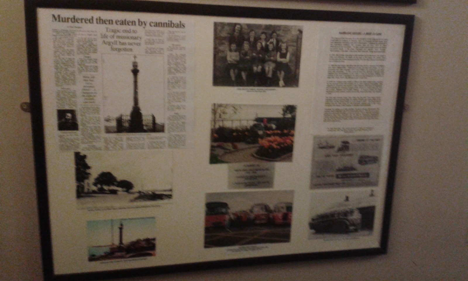 When we got back to our hotel in Ardrishaig, we were looking at the interesting local facts and history that were up in various frames, when who should we spot but Ken’s older brother David. In the photo of the MacBrayne buses with society members in front, David is the one in the red top in the front row – it’s taken quite a few years ago.