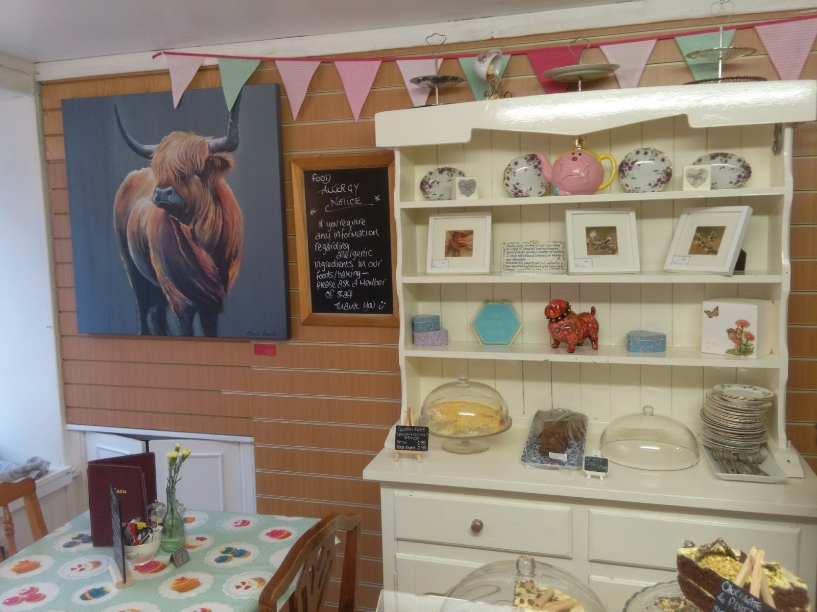 After the fun of Christmas decorations we needed sustenance so we went into Fochabers and stopped at Eats and Treats for a late lunch (I should add here that whilst I was in the Christmas shop my beloved ate four donuts!!).