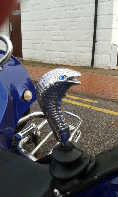 The gear stick on the trike was a snake, and the eyes were lights that flashed at us.
