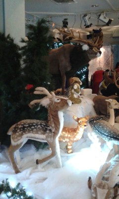 The stag in front of the Baxters village had been turned into Rudolph for the event.