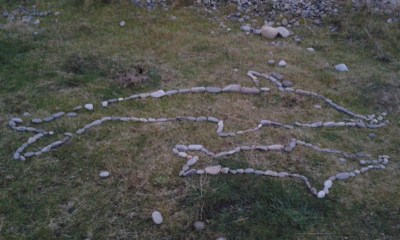 Some previous visitors to the bay had been very creative and created fish shapes with stones. There were also lots of lovely piles of stones around the grassed area.