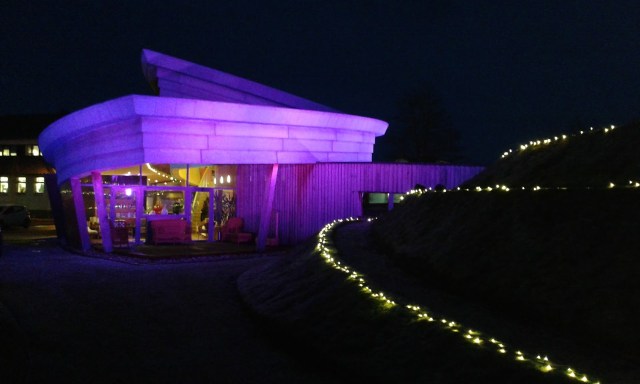 Happy Birth Day! And, no lovely lady is too old for a princess cake. I watch Outlander on Starz and recognize the name, Inverness, from the series. Love the stonework of the building. The elephant picture on the garage doors made me giggle, and the purple lighting is beautiful. My husband is battling cancer and I'm so appreciative of efforts to combat this horrid disease.