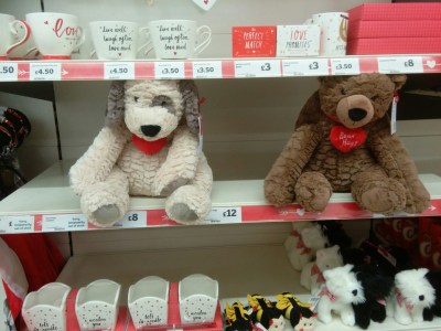 P.S: Final photo is my sad photo of the day – two lovely soft toys that had been left on the shelf at the end of valentines day, with no home to go to. I was very tempted and did pick up the white dog and give him a very big hug (just for a moment, you’d forgotten how strange I am, hadn’t you).