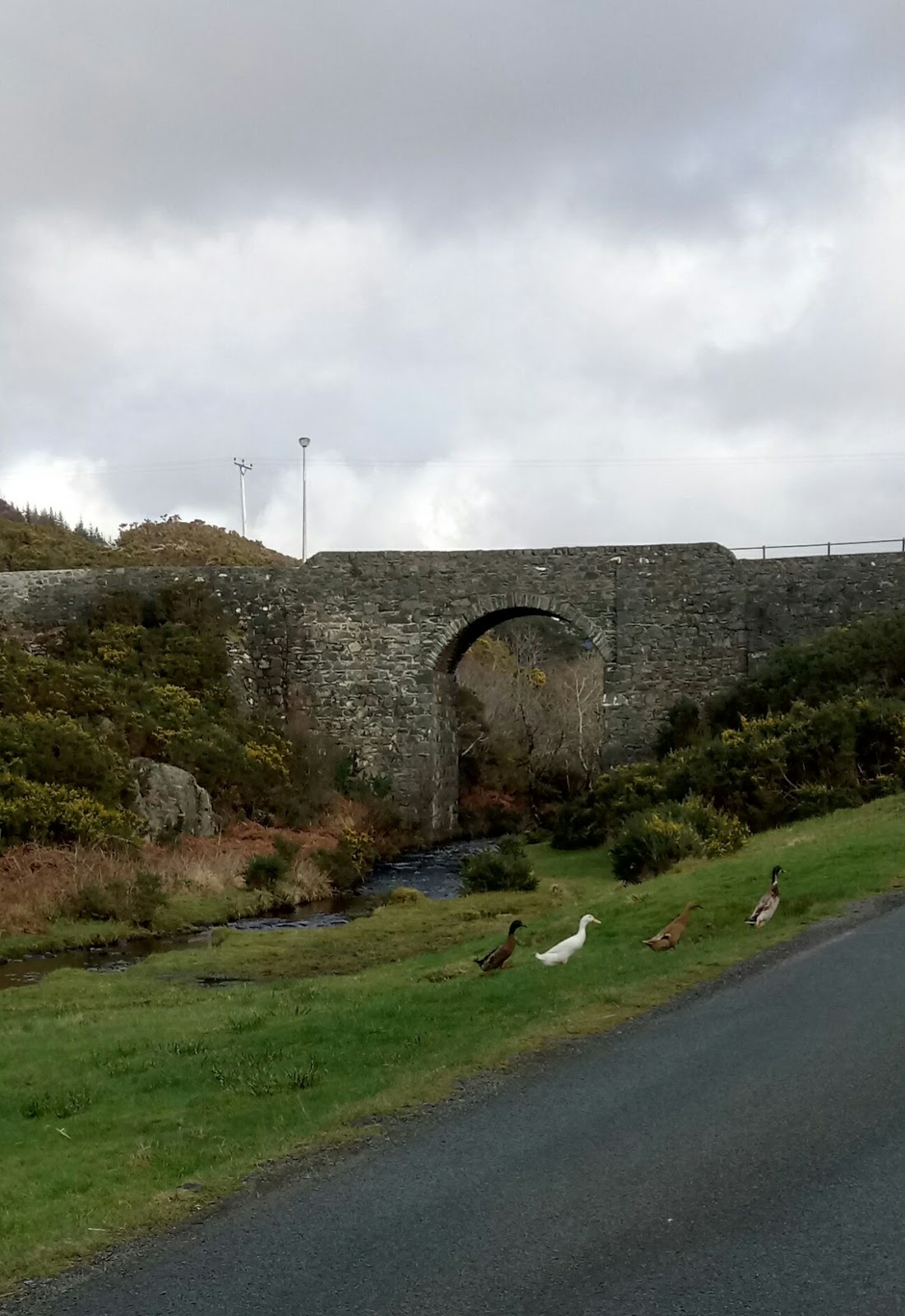 The very sturdy stone bridge which carries the main road over the river and away was designed and built by the famous engineer Thomas Telford in 1826. Telford also built the Caledonian Canal, redesigned the Crinan Canal (which passed in front of the house my beloved grew up in) and built 32 churches across the Highlands and Islands – he’s buried in Westminster Abbey in London.