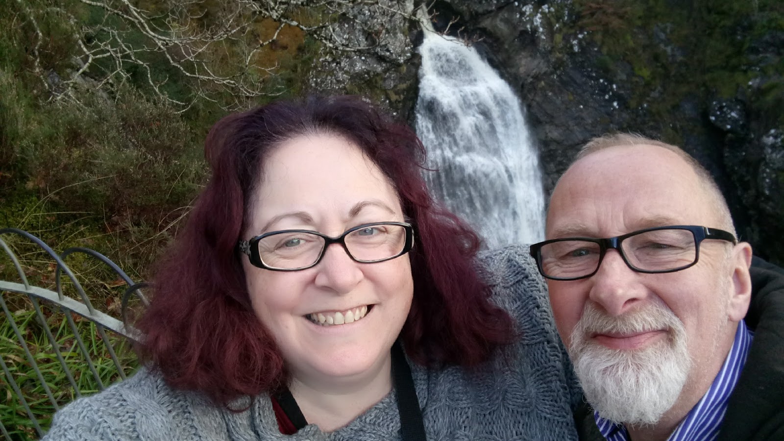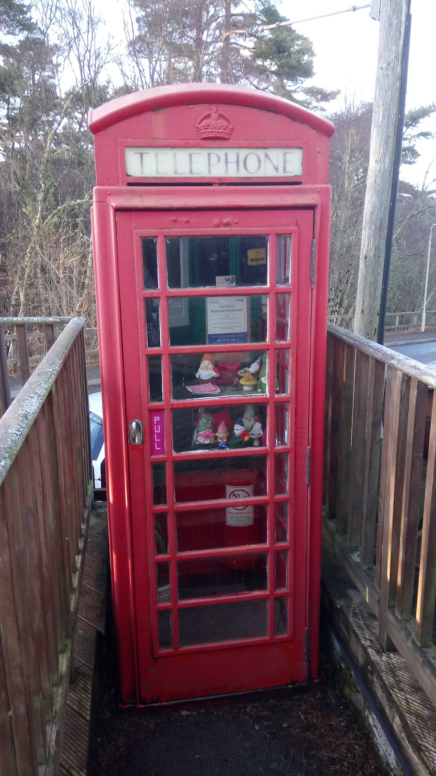 Hahaha, love that the gnomes repurposed the phone box! I do love the red phone boxes, it may be a touristy thing.Gorgeous falls, and very nice picture of the two of you :-)Can't wait for L (or N?) as you'll be writing about Loch Ness. You will, right? RIGHT???