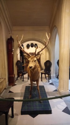 Very large stuffed stag in the castle.