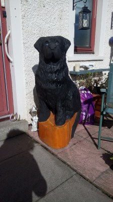 We found this interesting dog sitting outside someone’s door – he looks a little befuddled.