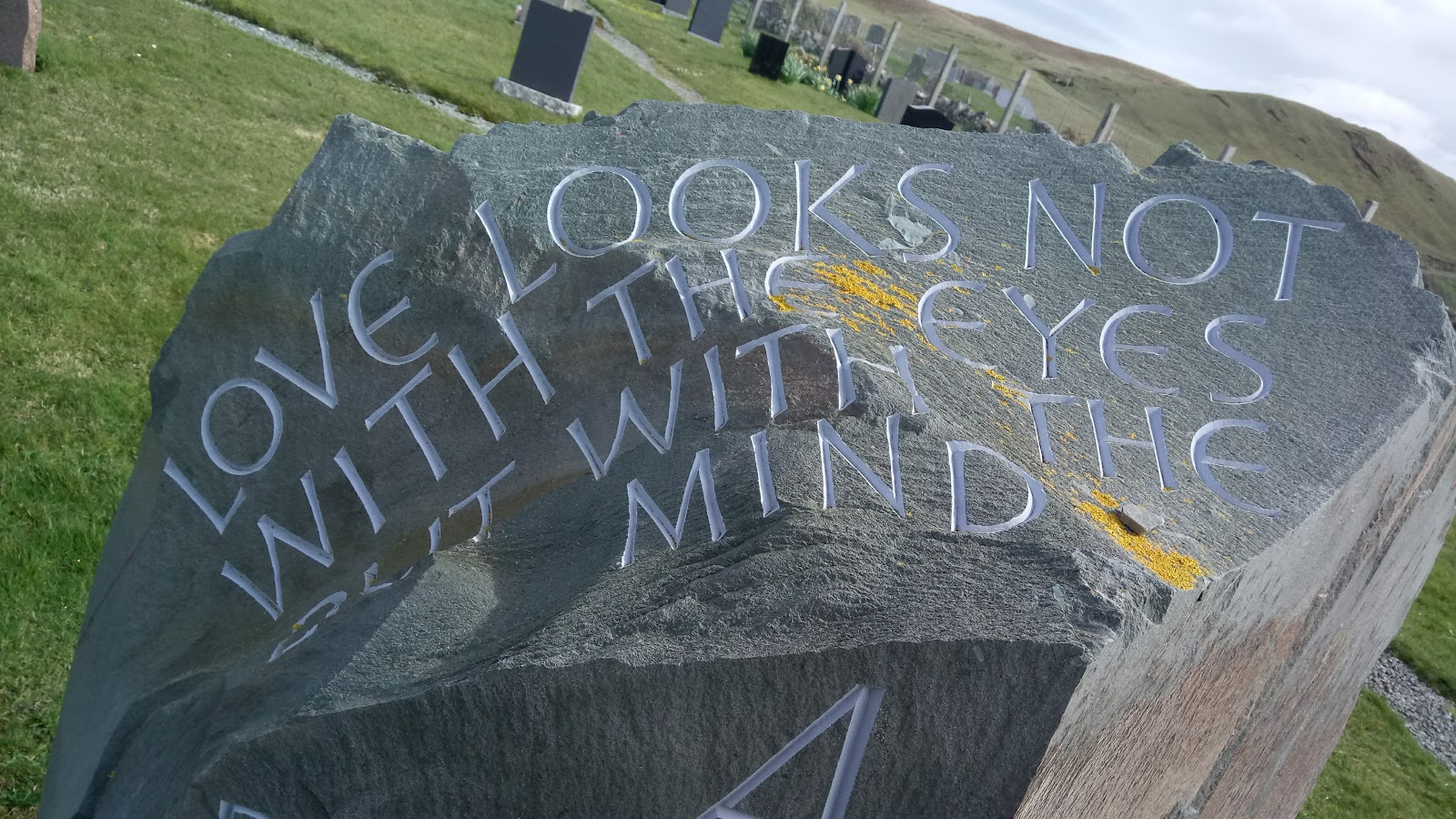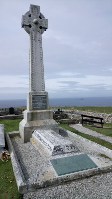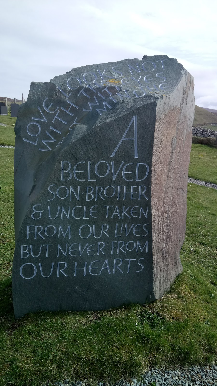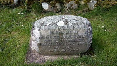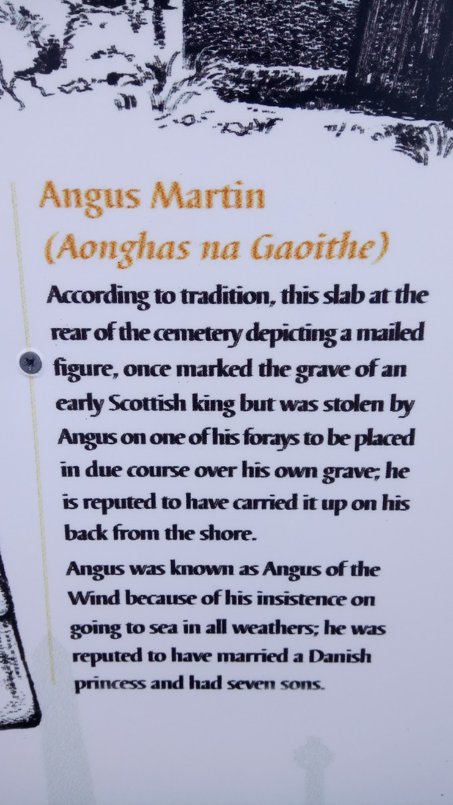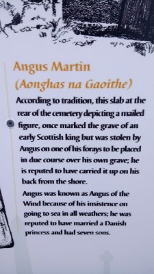 This stone marks the burial place of Charles MacArthur who was a famous piper to the clan MacDonald. Unfortunately the piper’s son was drowned before the inscription was finished so the stone carver gave up his work as he realised he wasn’t going to get paid. The inscription finishes half way through a sentence – “and the melody of his fingers will….”.