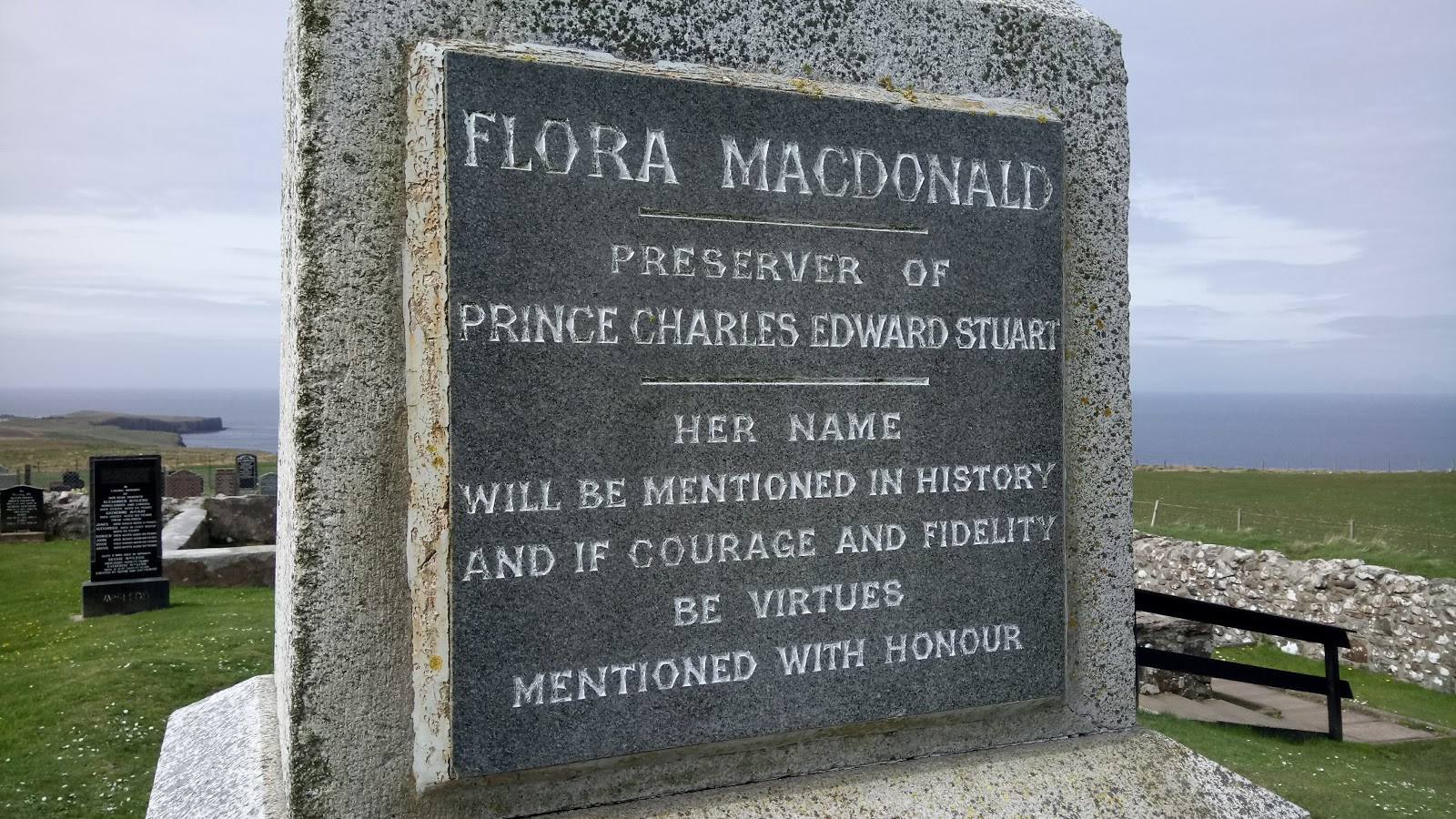 Flora is buried at Kilmuir graveyard on Skye – I love the epitaph and her name definitely is mentioned in history on a regular occasion.