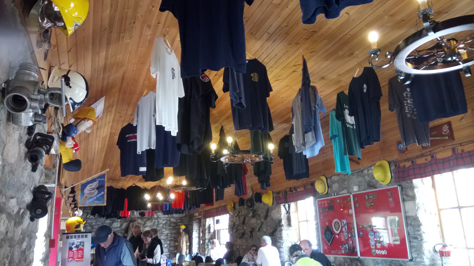 We stopped for a snack in the Old Fire Station Tea Room which has got lots of old fire fighting memorabilia including lots of hose nozzles, fire station related toys, helmets all around the walls, and hanging from the ceiling are fire shirts from several different countries.