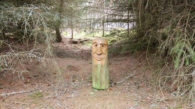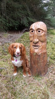 At the end of the main street there is a park with walking tracks through the forest. Along the way we found these three interesting characters in amongst the trees and the bog. Bramble decided to make friends with one of them.