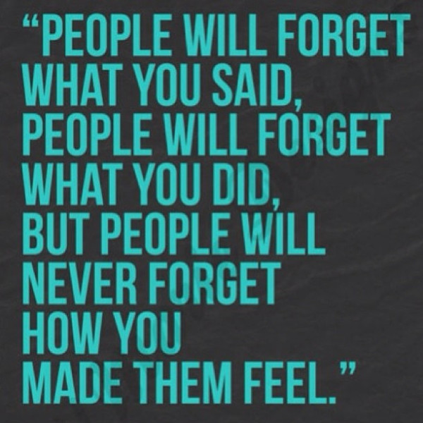 That is soooooo sweet! What a great compliment. And yes, people will remember how you made them feel.