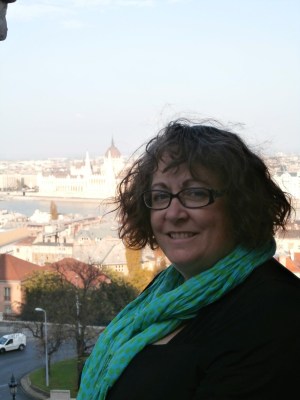 Me with shorter hair and the city behind me.