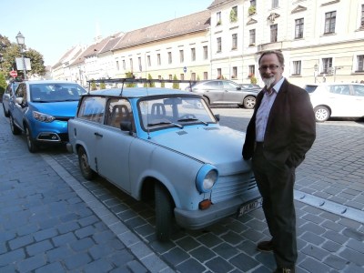 We’re still in Budapest (2014) and of course my beloved would find a car to admire. This is a Trabant which is a car manufactured in East Germany and my own personal car expert has said it’s got a two stroke engine and is made of a cotton and resin product called duroplast. There are a lot of them in Budapest so Ken was in seventh heaven checking out the classic cars.