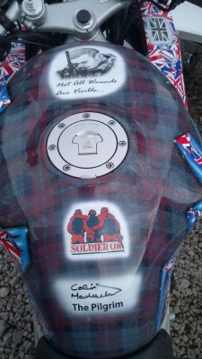 The paintjob on this bike is a forces commemorative one and on the tank it has the words, ‘not all wounds are visible….’