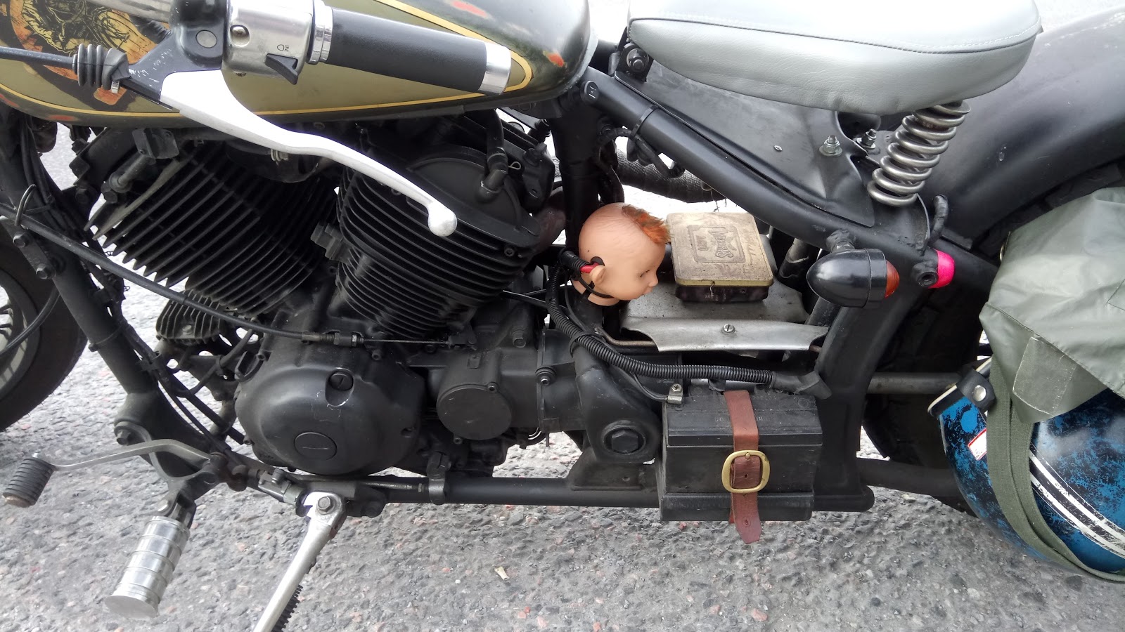A very unique bike that was a bit like the ratrod style of cars that Ken likes – it’s got great paintwork and very interesting parts on the bike including a doll’s head.