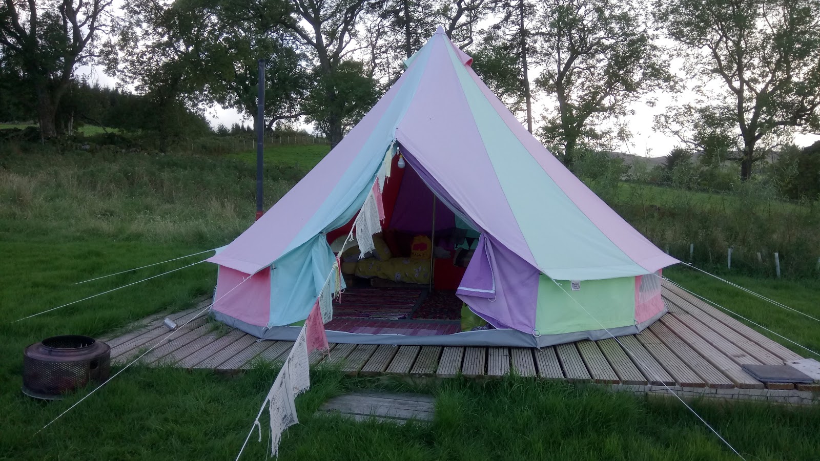 Look at our tent of loveliness! It’s beautiful and so my colours. Our tent was at the very edges of the campsite which meant furthest from toilets but it also meant it was the most peaceful spot on the site.