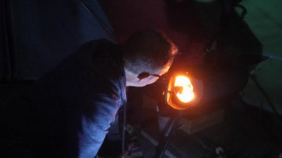 In our tent was a tiny wood burner which helped to keep us toasty and warm at night – here’s Ken doing his man thing with the fire (I tried and was a disaster at firestarting).