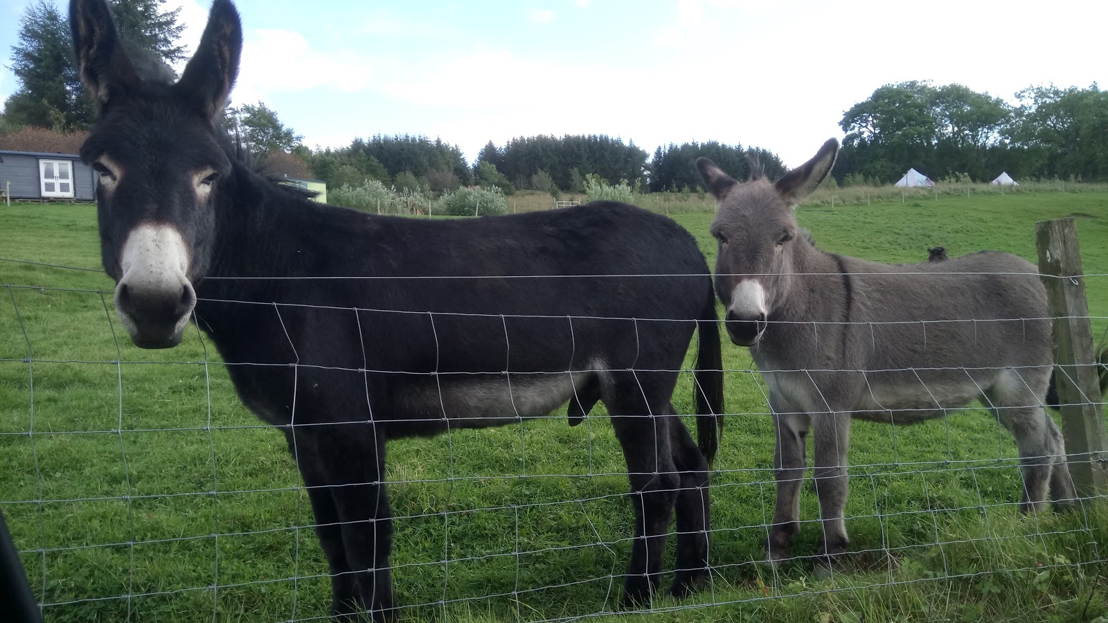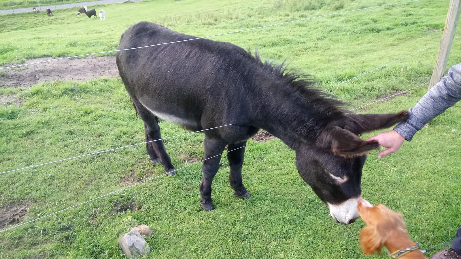 Bramble meeting one of the permanent residents of the campsite – she was very nervous and Ken had to spend ages encouraging her to get near. The donkey just patiently waited for her to come and say hello.