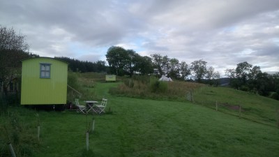This is looking towards our tent across part of the site. There were two of the green wagons plus several pods near the main house for people to stay in. If we were to go in winter I think I’d choose to stay in one of the wagons as they look really cosy and cute.