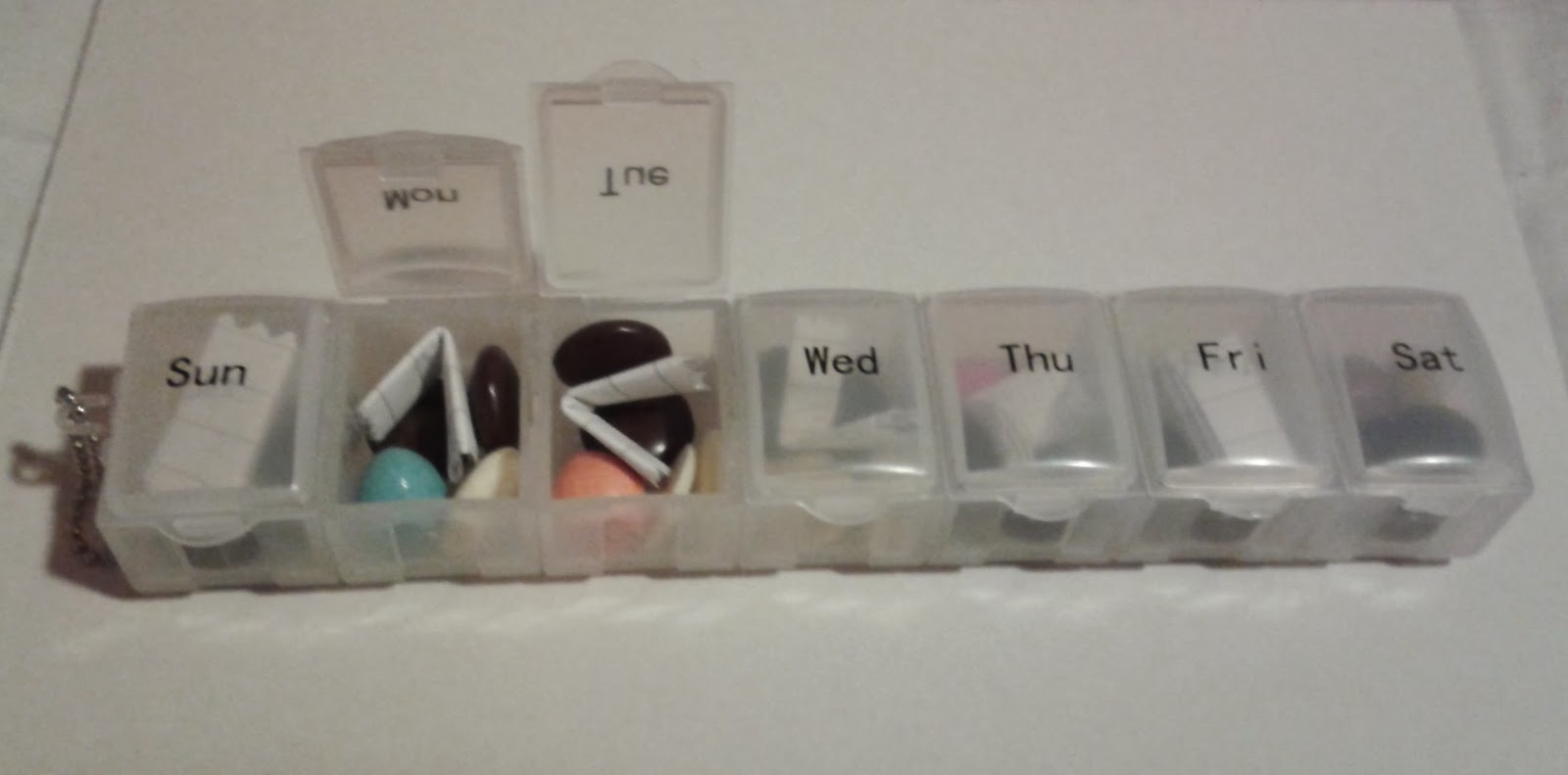 7. This is an idea that I got from the Dating Divas – they have lots of lovely boards that are full of romantic ideas. This is a one week pill box but instead of pills I put sweets into each day’s box along with a love note for my beloved.