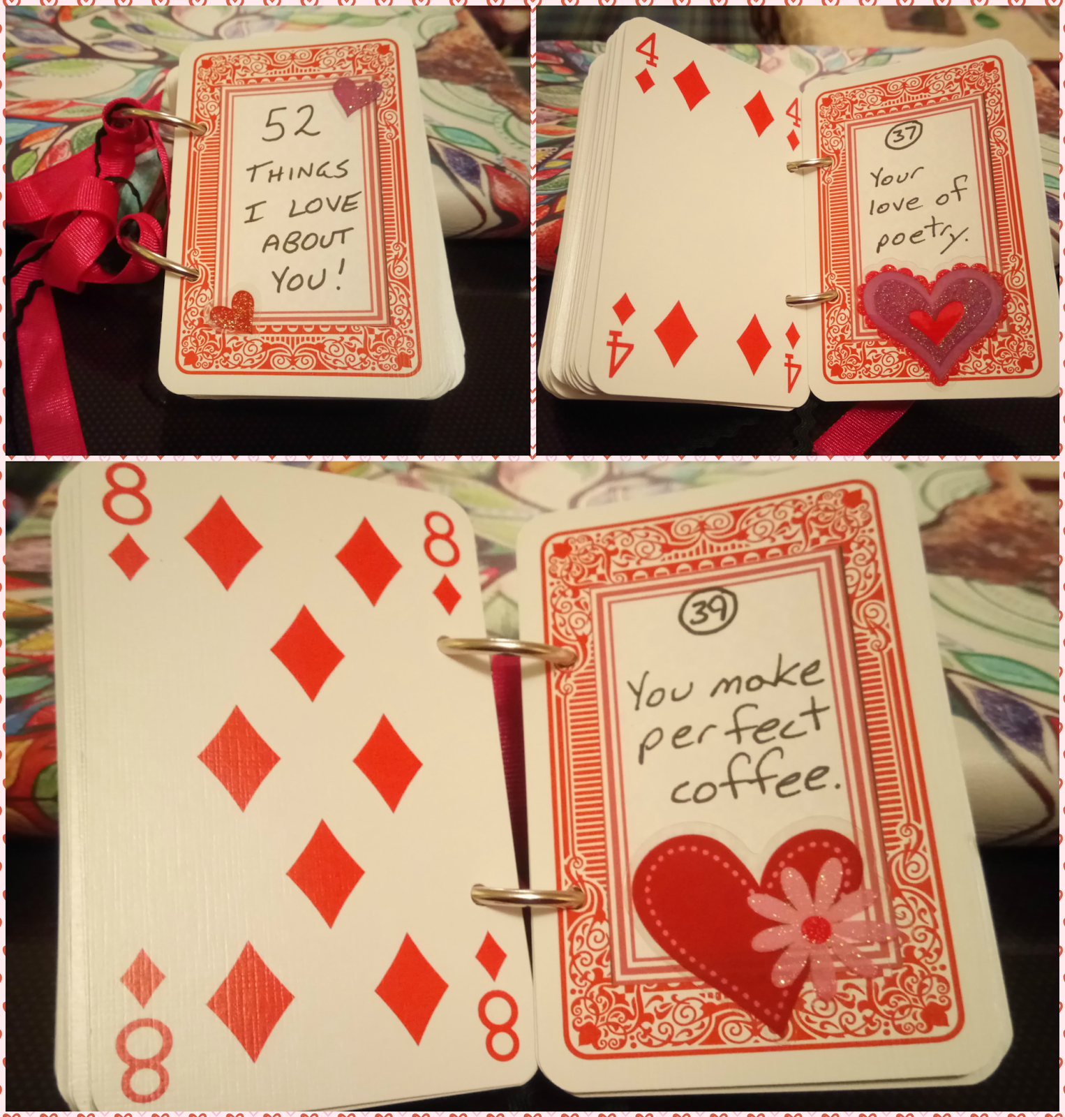 10. Another incredibly soppy romantic idea that I got from within the depths of Pinterest. It’s a pack of cards with 52 things I love about Ken – one written on every card. It took me quite a while to get it completed, but Ken’s reaction when I gave it to him was worth every moment.