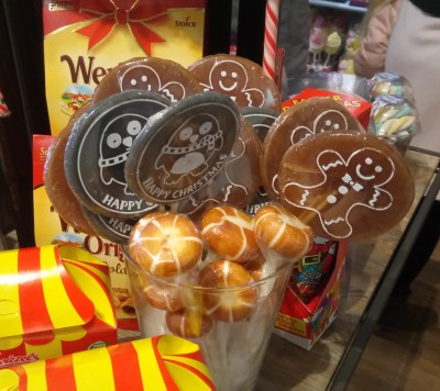 After our sustenance we headed around the shops to look at all the lovely Christmassy things. The food hall always has lots of lovely things on display, and wonderfully they had lots of tasters, mulled wine, and mince pies. We tried lots of pieces of fudge and I think our favourite was the panettone fudge – the Christmas pudding fudge was not nice.