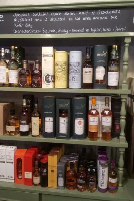 After the food hall we went in the whiskey shop, and I was fascinated by the fact that is written above these bottles. It states that Speyside (the area around the River Spey) contains more than half of Scotland’s distilleries – that’s amazing!