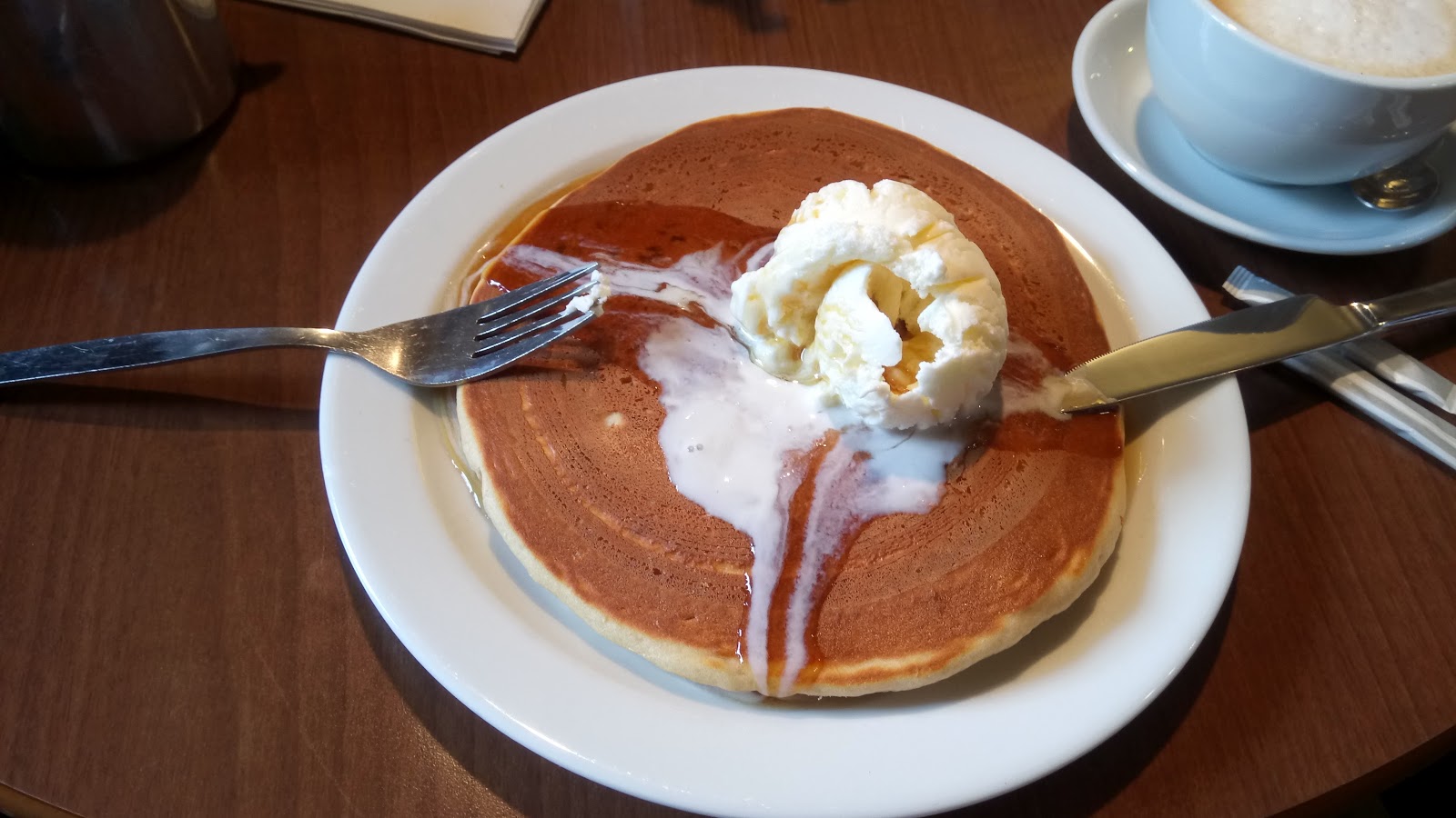 That looks like such a wonderful place to enjoy the day. And the pancake looks really good. I had never thought to put ice cream on one- yum!