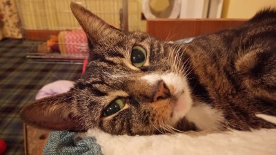 As for our furbies, Princess Cookie Cat is nearly 14 and has started to show her age in small ways – the biggest being that I can catch her quite easily now which makes going to the vet much less stressful. She’s sitting beside me as I type this, but of course she’s got her back to me so I’ll share a photo I took earlier.