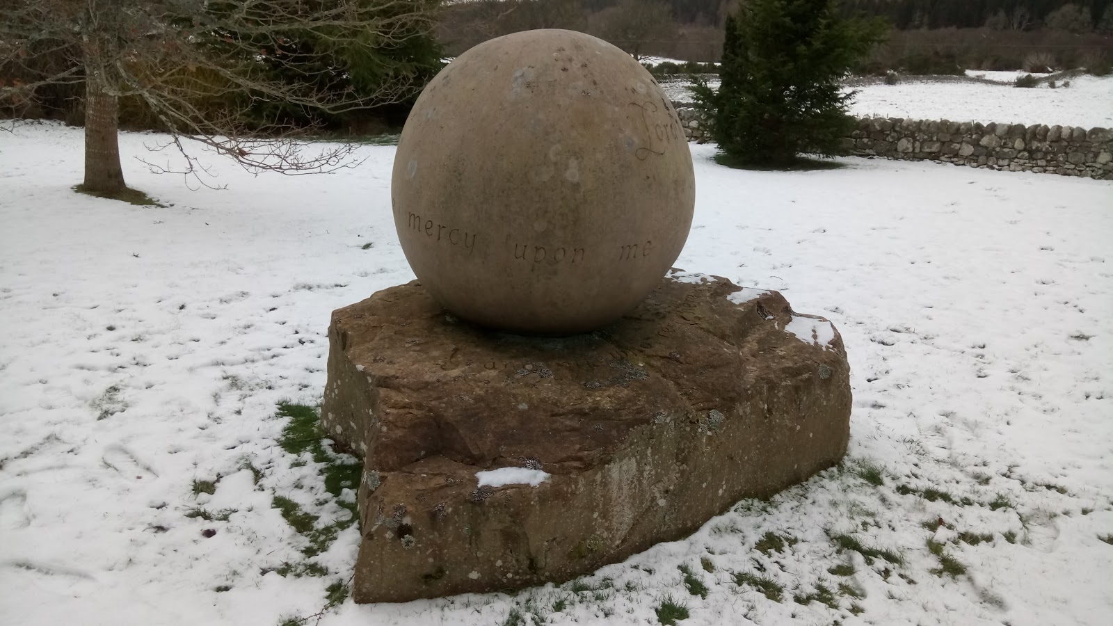Next to the churchyard is a fenced off area that we could only see two graves in and in the middle there was a large stone ball. Mr Google has informed me that this new area is for the current family of Cawdor and the most recent person to be buried here was Hugh Campbell, the 6th Earl.