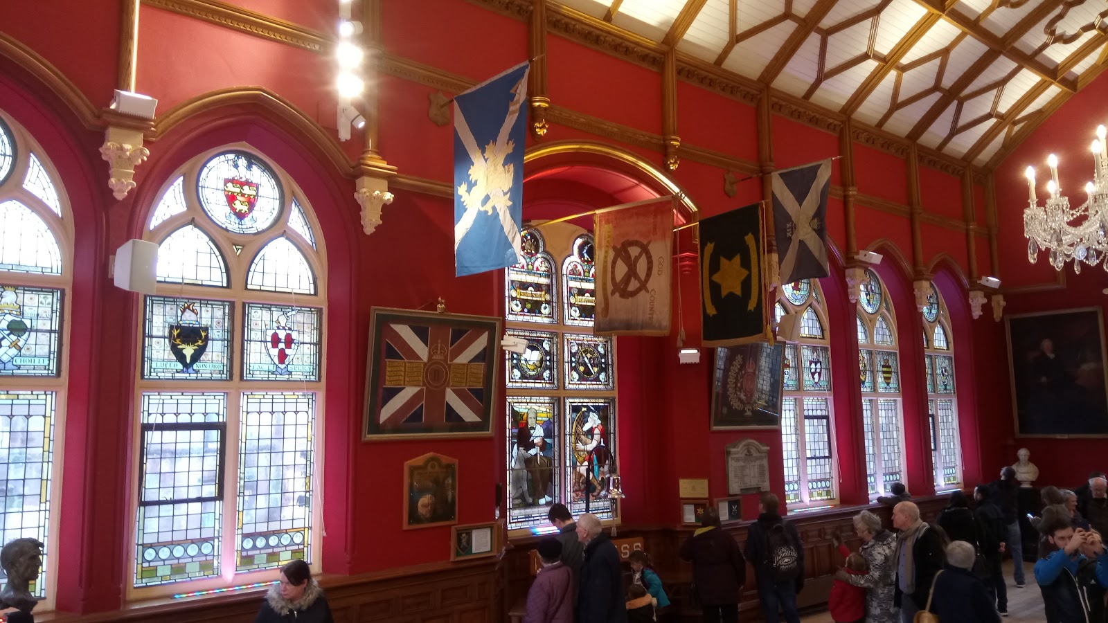 The town hall is a huge space with paintings of important people in the history of Inverness around the walls, along with artifacts from the history of the area. There is even a sword that was used at the battle of Culloden in 1746.