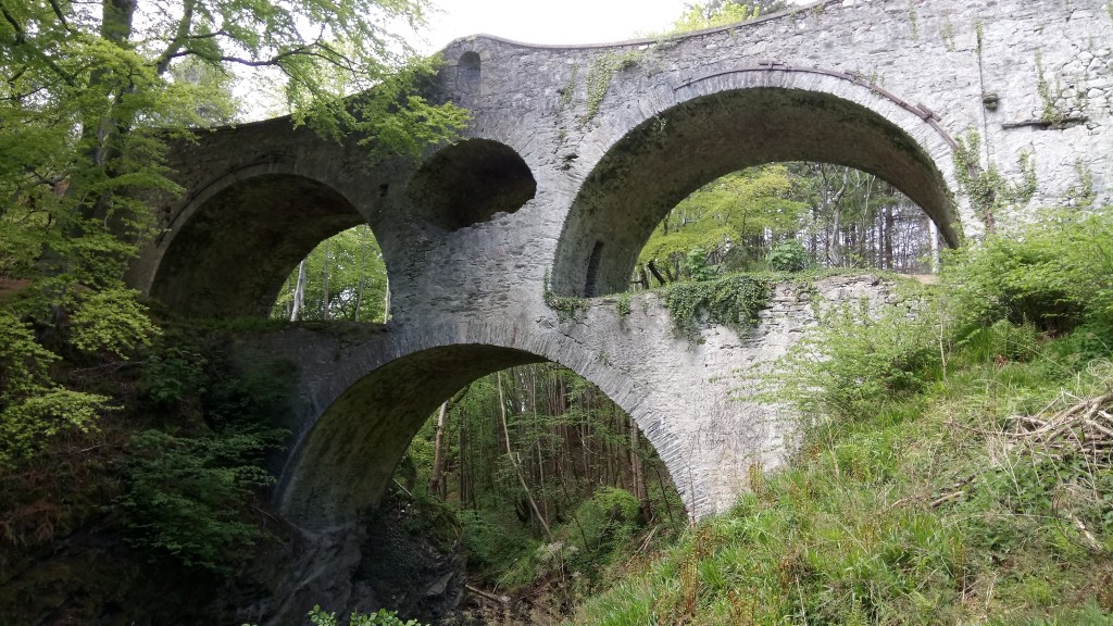 Craigmin bridge is an incredible structure that is in the middle of the woods and nature is slowly taking over. There is not much information out there about this, just that it is thought to have been built in the late 1700’s and there is some debate as to whether the lower portion was built first or if it was all built at the same time.