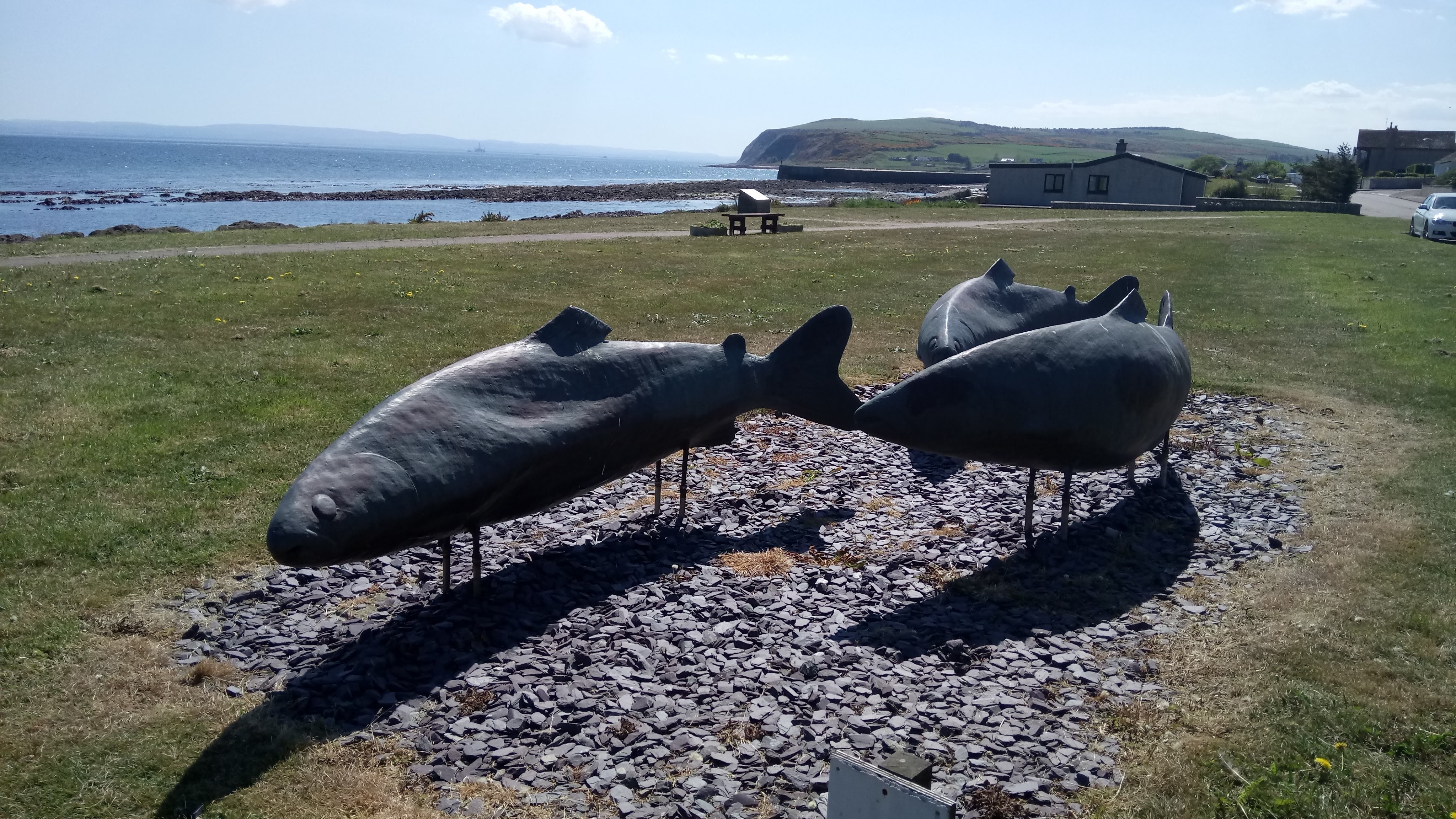 Hi Pam – lovely time you had up in Balintore … the sculpture park looks to be a fascinating tour … love the salmon -while the mermaid is perfect isn’t she. Beautiful scenery – rugged but telling its own tale of geological life. Yellows against the skies with the greens of newness … what could be better. And yes I’d be stopping at the egg farm … what a clever idea for dispensing eggs … looks good – cheers Hilary