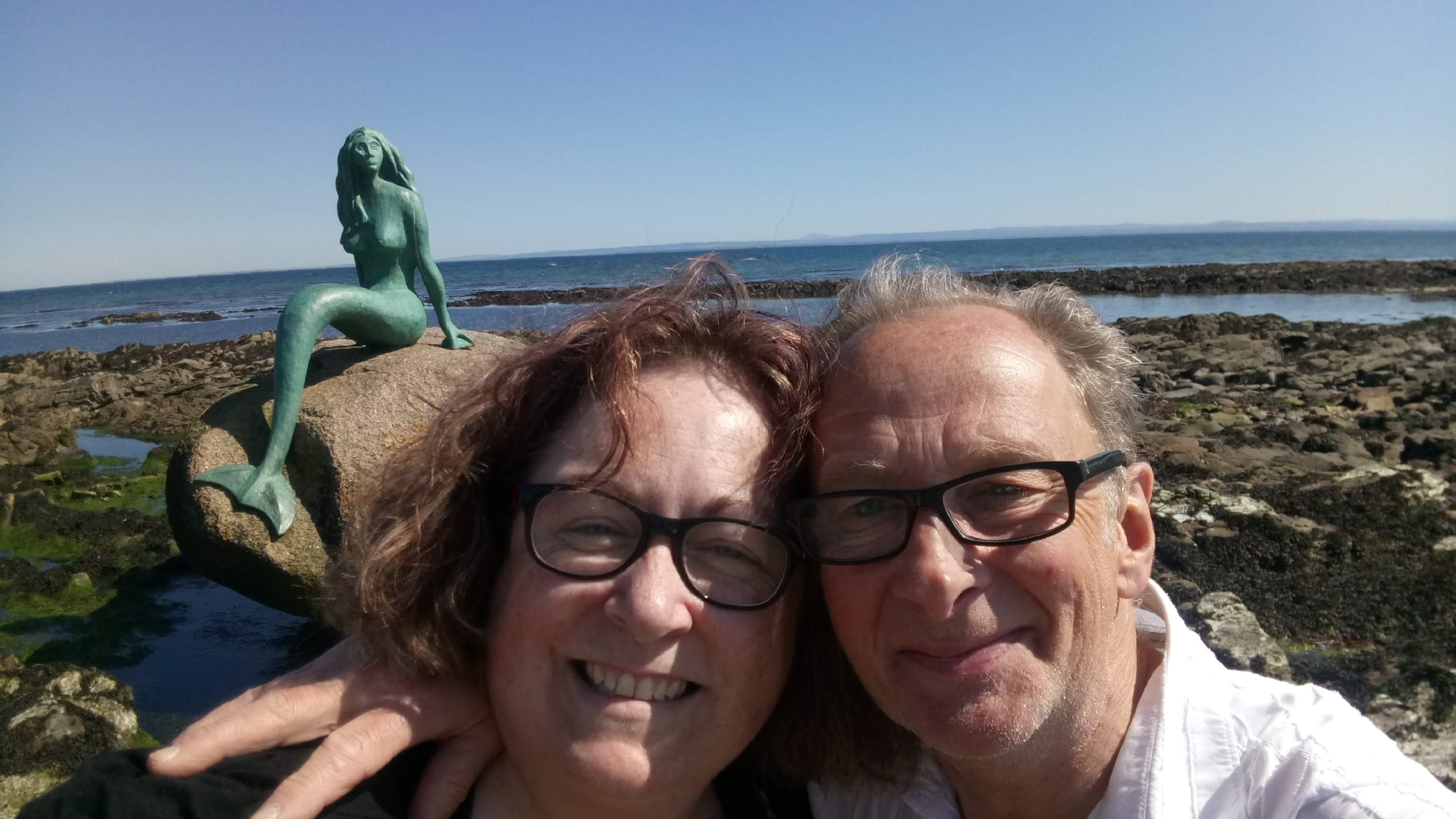 We found the beautiful mermaid reclining on a rock and she’s much larger than we expected.