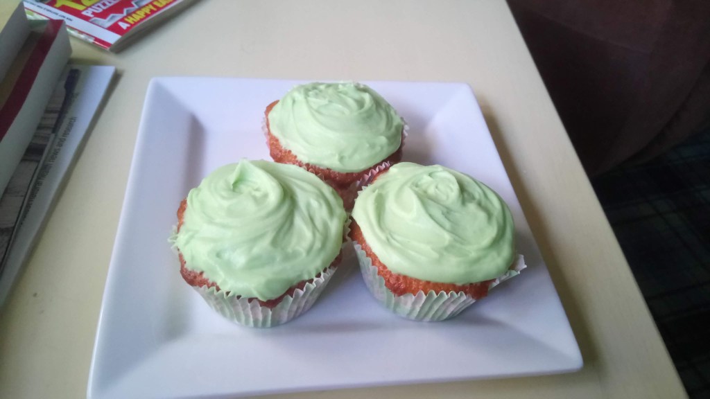 In keeping with nature and the garden, I made green buttercream icing for my most recent bake, vanilla cupcakes.