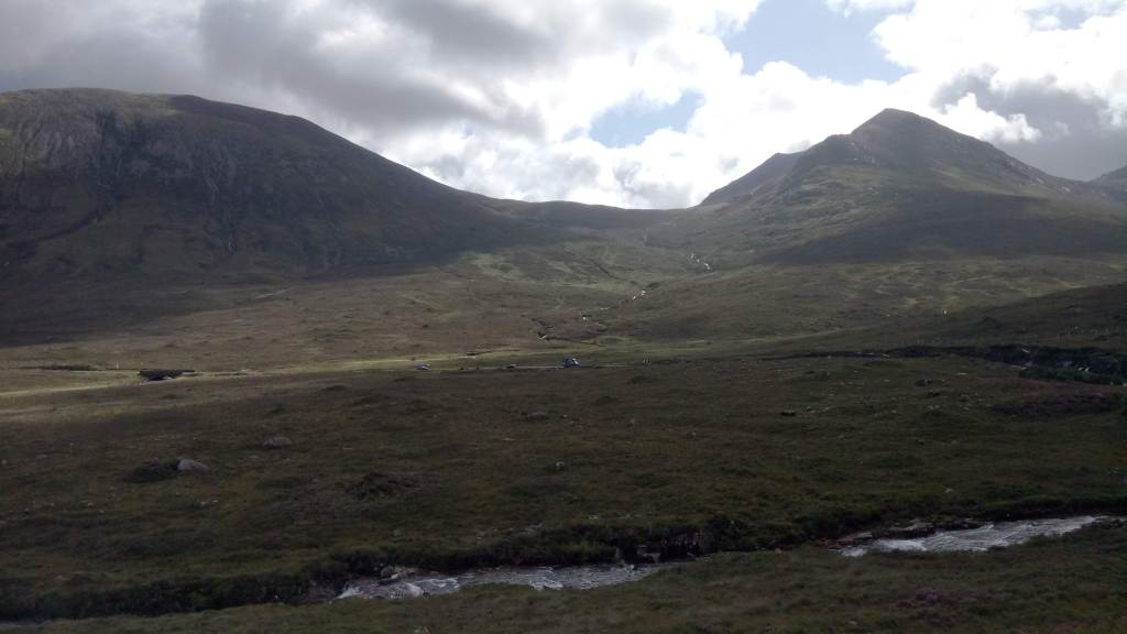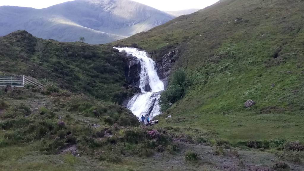 Here’s the two of us in front of one of the many roadside waterfalls. We were quite amused when we were standing there by people wearing very inappropriate footwear trying to get nearer to the waterfall. The ground around it was basically a peat bog, so they kept sinking.