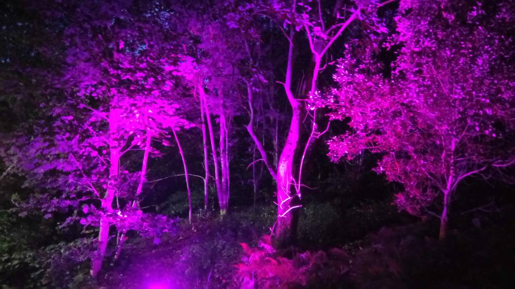 The area around the festival was lit up beautifully with lights, making the trees look like a fairy wonderland.