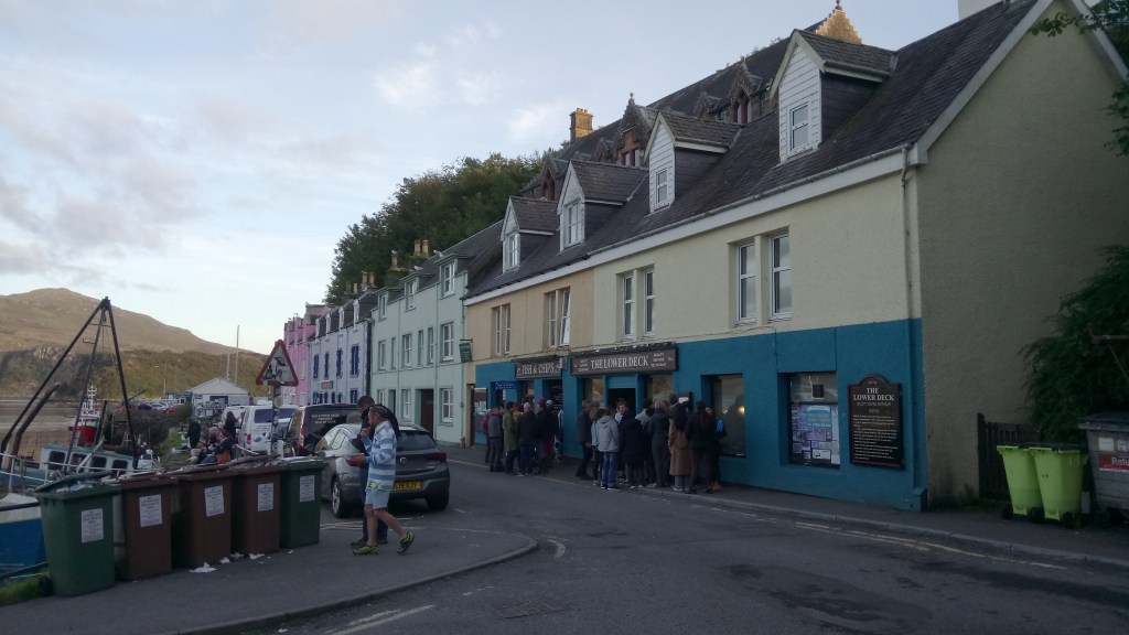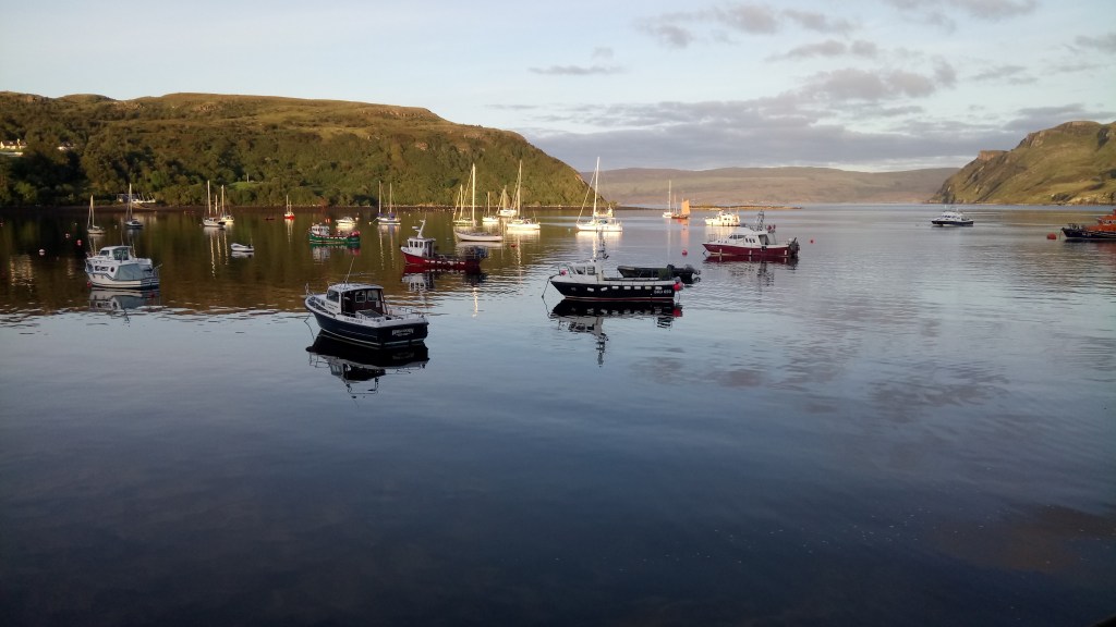 As we wandered down through Portree back to the car, we ended up having a really healthy late night snack at one of the hotels – coffee and cake is good any time of the day.