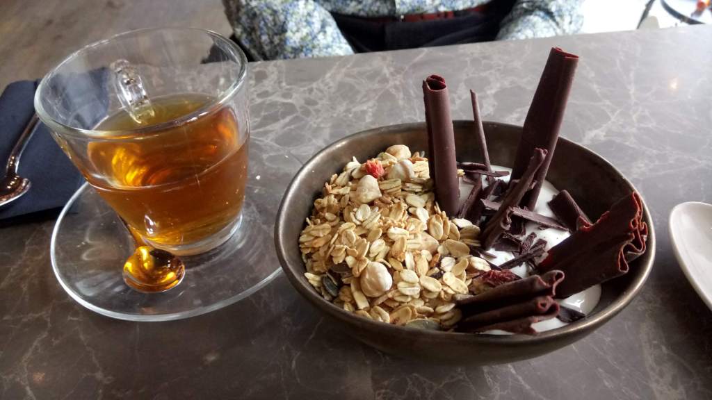 Before we did anything on our first full day, we had to find somewhere for breakfast, and we found a fabulous chocolate cafe. My beloved ordered his usual healthy option of granola, but it was a granola with chocolate overload.