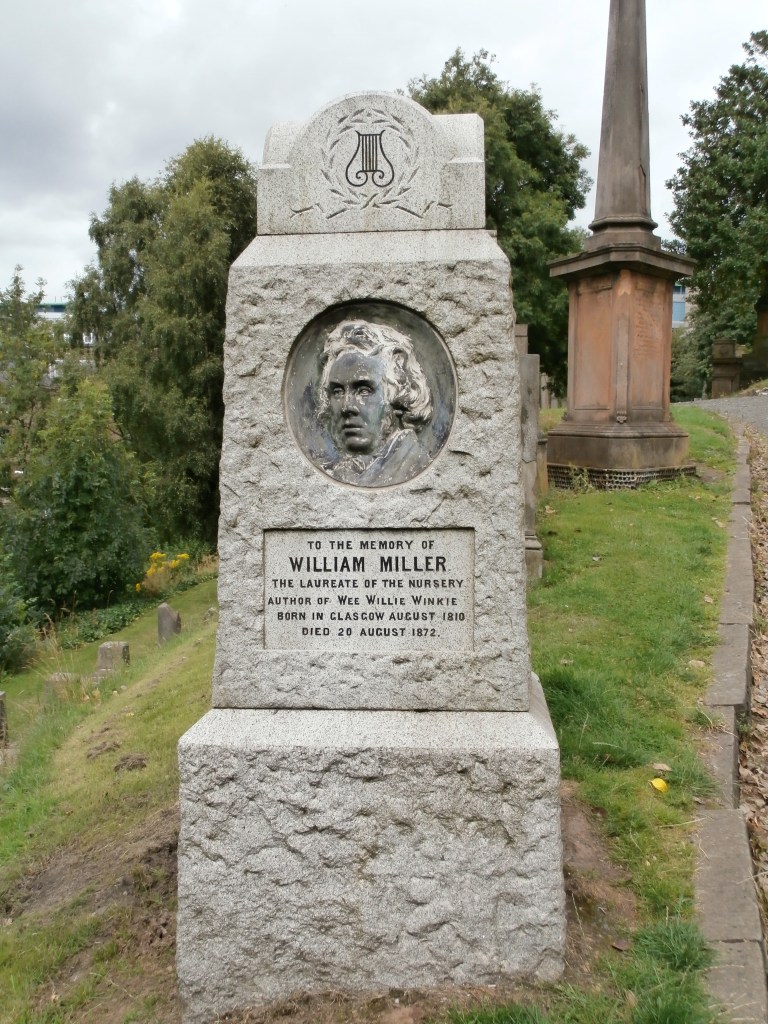 The one famous person we stumbled across was this monument to William Miller who wrote the nursery rhyme Wee Willie Winkie. I initially thought it was his grave, but after a bit of research I discovered that when he died he was destitute and buried in the family plot in Tolcross cemetery without a marker. This memorial was erected with public money.