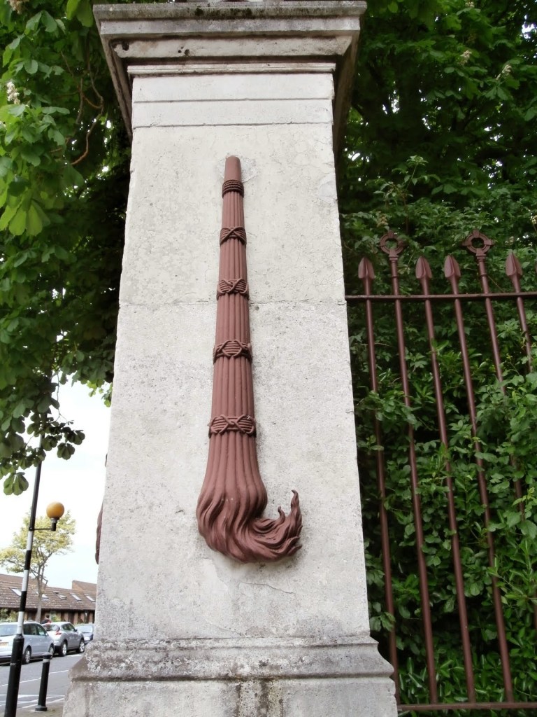 At the entrance are these upside down torches which are a common symbol in graveyards. It is upside down to represent death, but despite being upside down the flame still burns which represents eternal life.