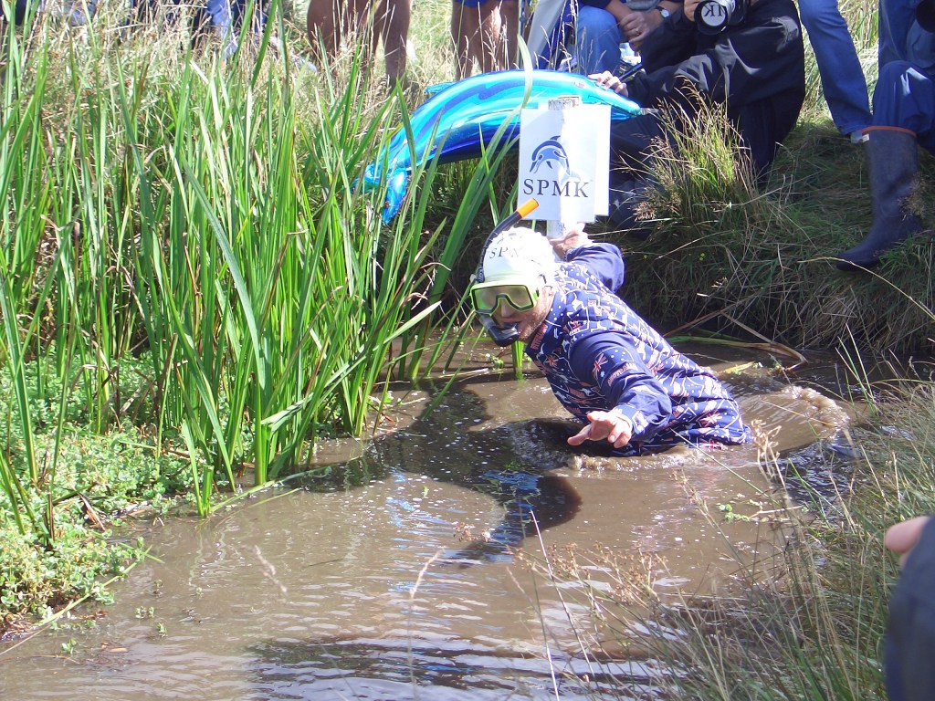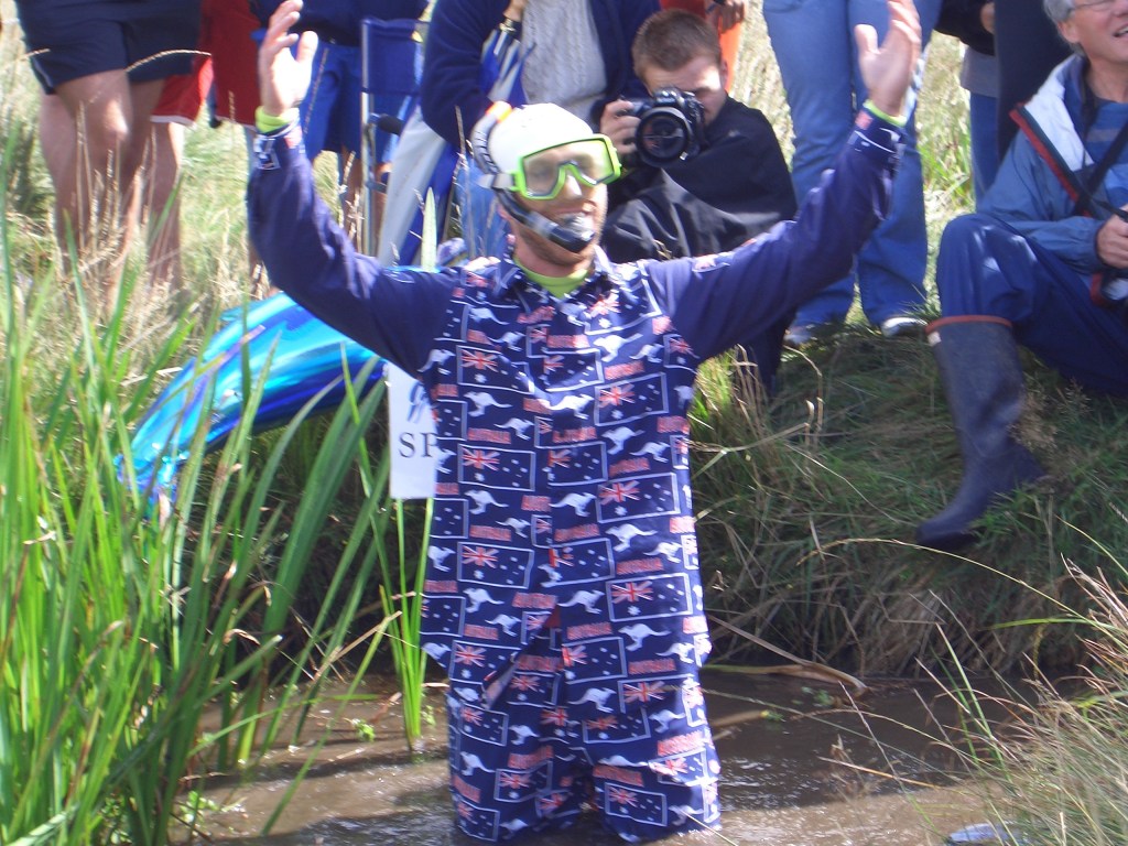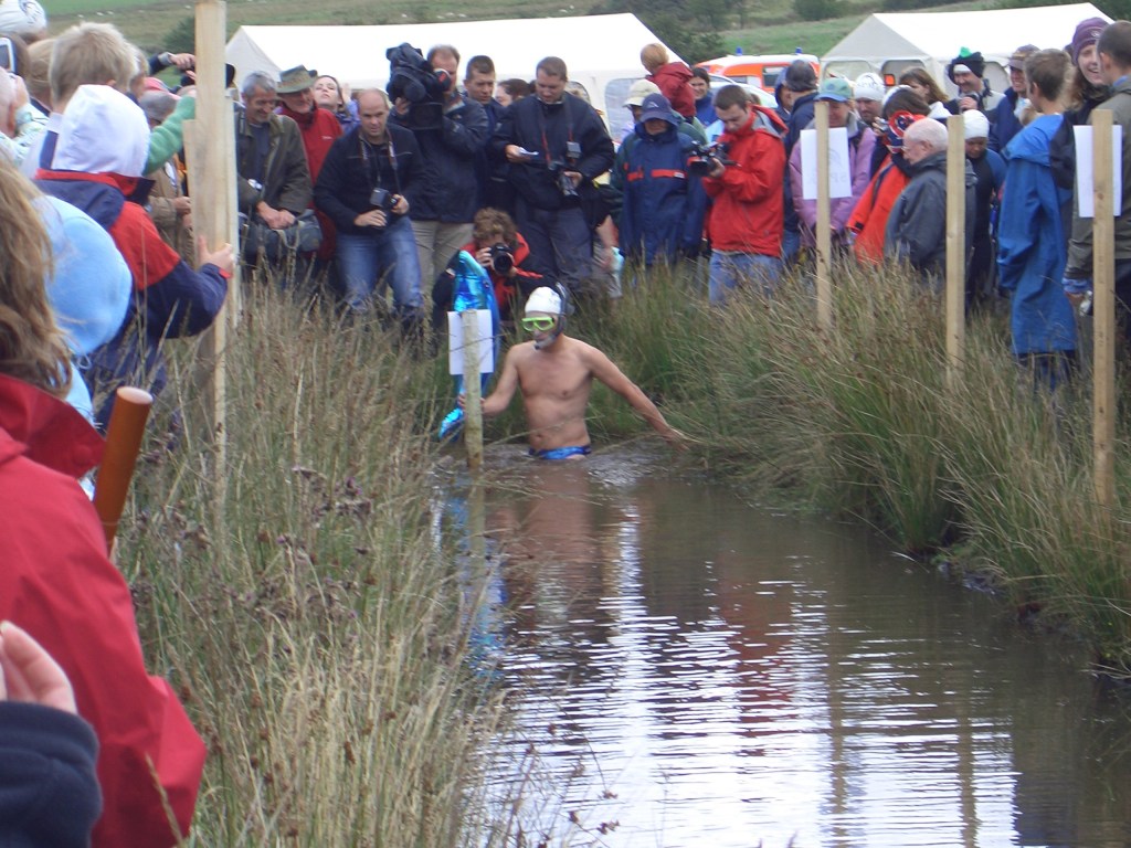 You have to swim two lengths of the bog and if you take more than 2 minutes for the first length you get stopped. Also, you’re only allowed to swim doggy style, no proper swimming strokes allowed, and you have to keep your face in the water which must be awful as it’s really muddy.